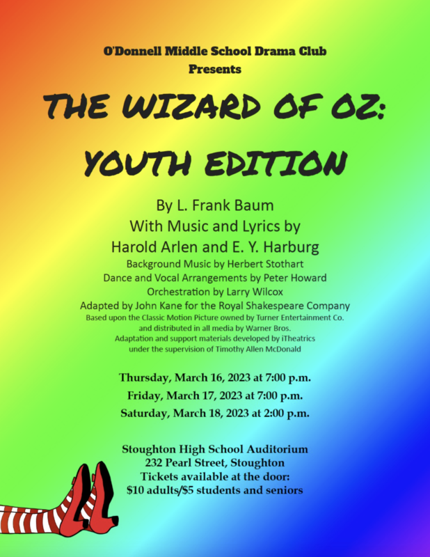 The O'Donnell Middle School Drama Club will be presenting The Wizard of Oz: Youth Edition from March 16-18.